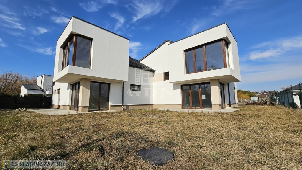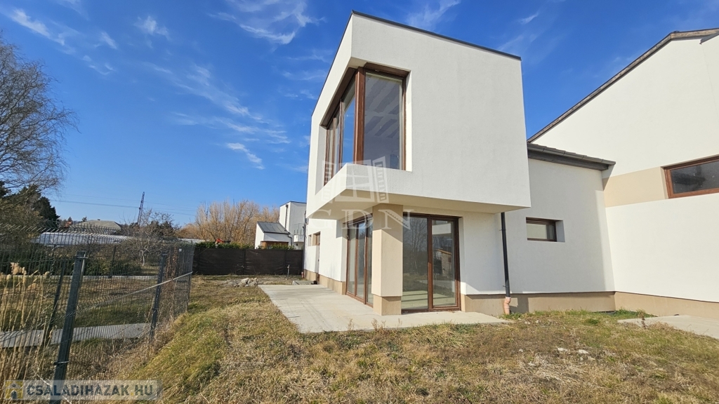 A MODERN, egyedi stílusú ház Diósd zöldövezetében, csendes utcában, újépítésű házak közt, magasfeszültségű oszlopoktól távol található.
