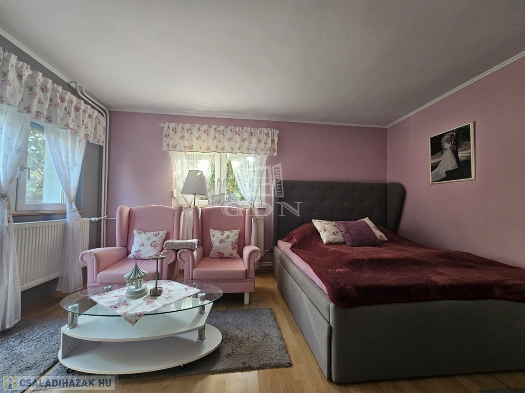 A kert nagysága miatt bővíthető a lakóépület és fejleszthető a terület.