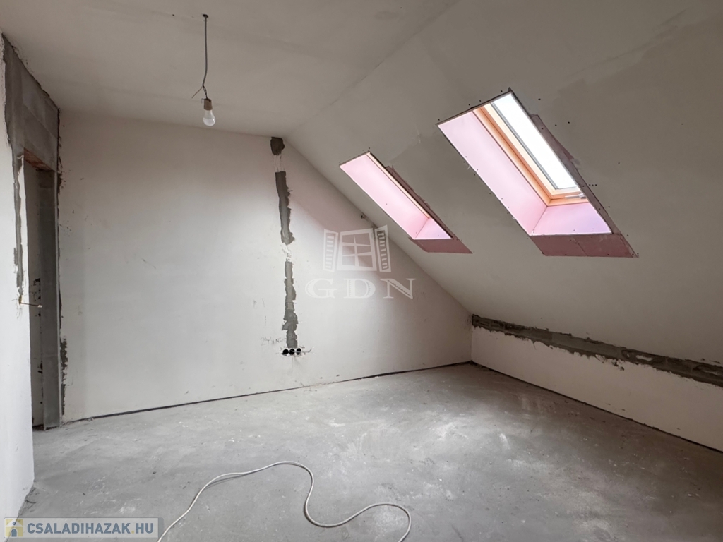 közlekedő-lépcsőtér 9,4 m2, 3 szoba (19,33 m2, 11,22 m2, 9,20 m2), fürdőszoba (7,25 m2), WC (1,53 m2), gardrób (5 m2).