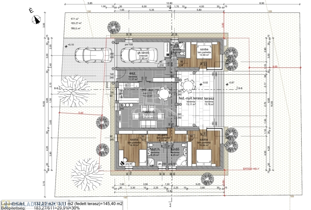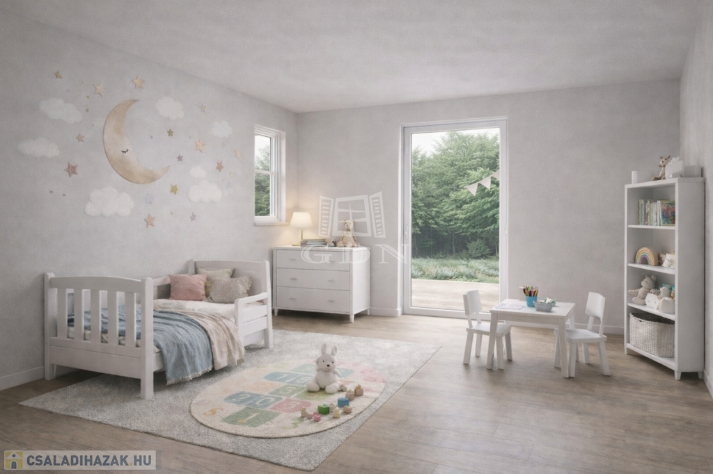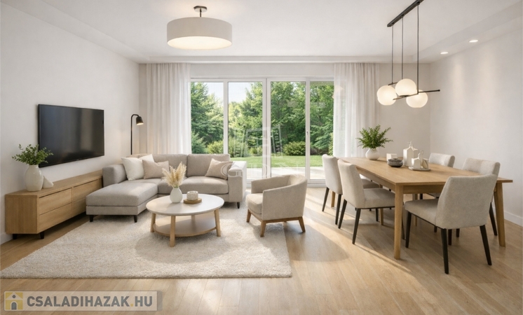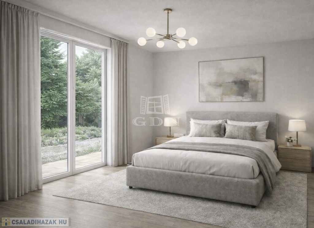 A három hálószoba, a garázs és a korszerű gépészet mind azt szolgálja, hogy a kényelem és az energiahatékonyság kéz a kézben járjon.