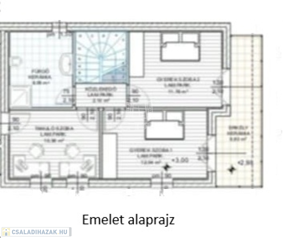 A kétszintes ház nettó 105 nm, 450 nm-es telekkel.
