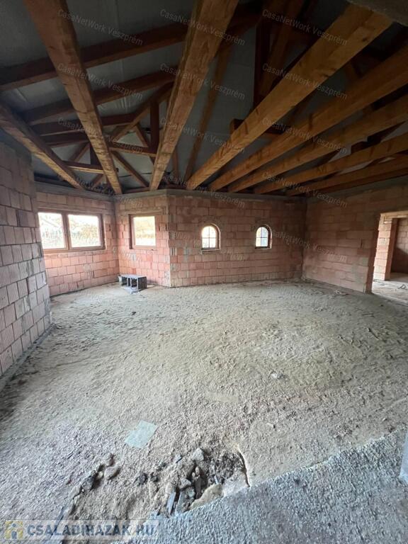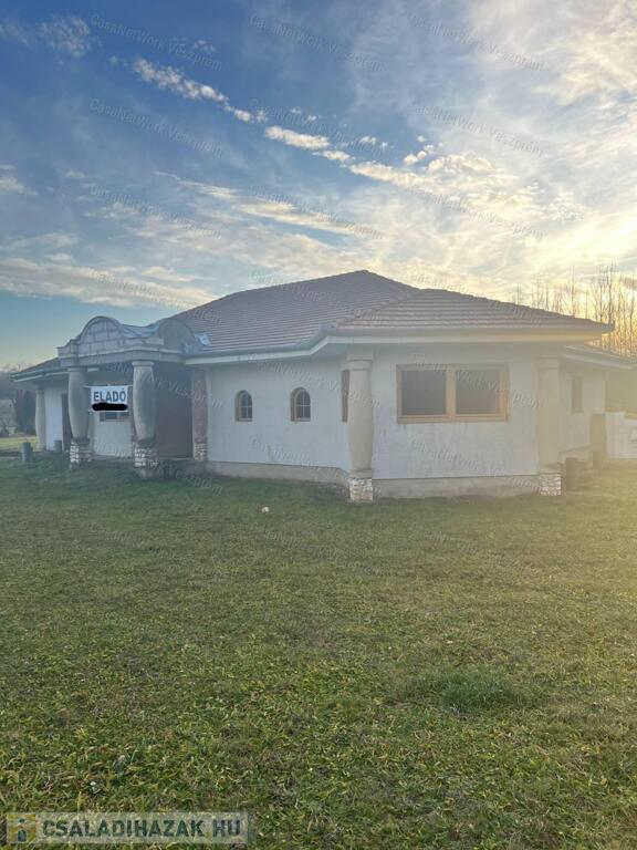 Eladó Döbröntén, a Bakonyalján, Pápától mindössze 14 km-re egy panorámás, 5547 m²-es telken álló, 210 m²-es szerkezetkész ingatlan. A telek közvetlenül az erdő mellett fekszik, így igazi bakonyi hangulat, nyugalom és természetközeli környezet várja az új tulajdonost. Az épület jelenlegi állapotából kifolyólag az elrendezés teljes mértékben az új tulajdonos ízlésére van bízva.