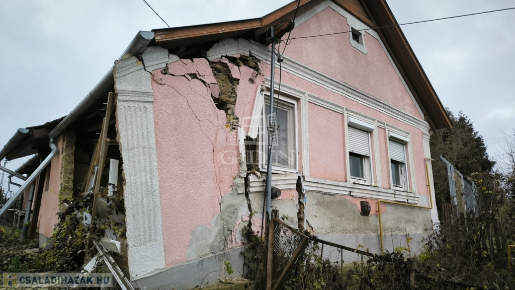 A tetőt néhány éve cserélték, viszont vízkár következtében a pince beomlott, valamint az utólag épített félszoba megsüllyedt.