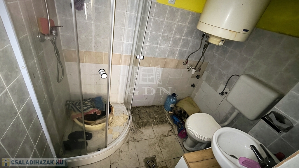 A tetőt néhány éve cserélték, viszont vízkár következtében a pince beomlott, valamint az utólag épített félszoba megsüllyedt.