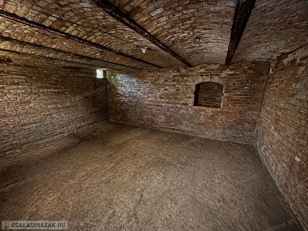 A ház alatt egy igazi különlegesség található: egy 38 m²-es, téglával kirakott borospince, melynek falán az eredeti építési dátumot megörökítő emléktábla is látható – ritka és értékes hangulati elem.