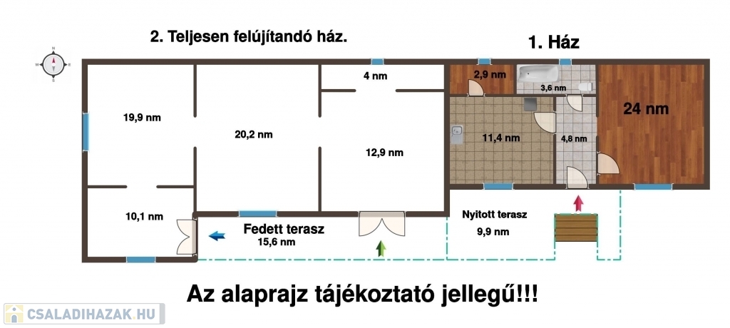-Méret: 46,7 m² + 9,9 m² betonozott nyitott terasz
