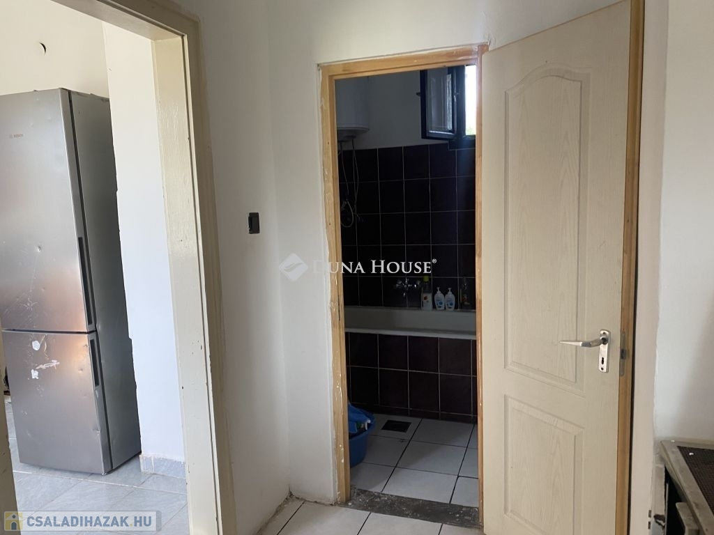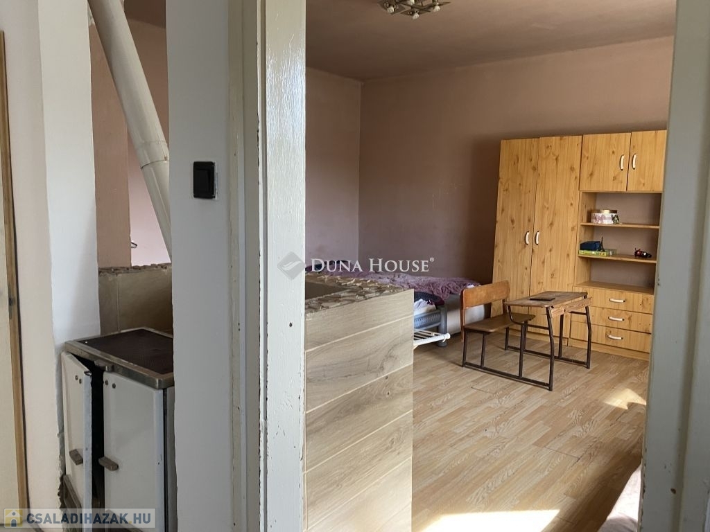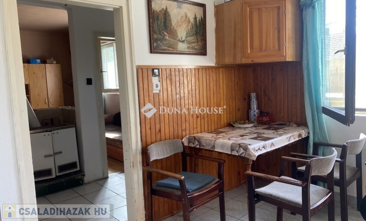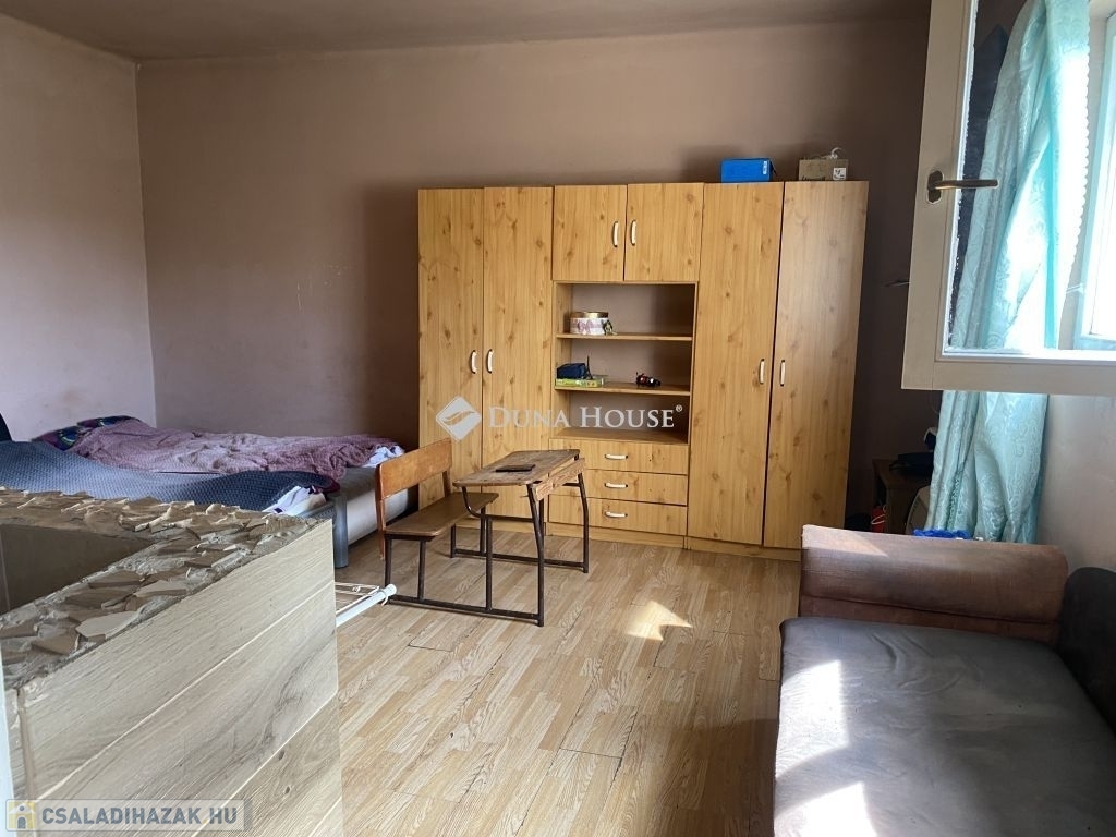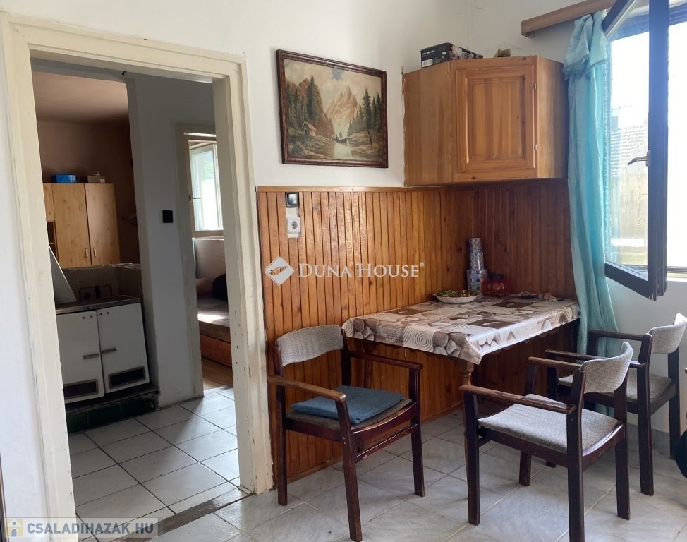 1. Ház:Nyitott betonozott lépcsős teraszról nyílik a műanyag ajtóval ellátott előszoba. Jobbról hatalmas szoba ,szemből fürdő toalettel, balról konyha és étkező. Innen nyílik a kamra helység.Fa tüzelésű kályha biztosítja a hideg hónapokban a fűtést,ami a folyosó és a szoba közé lett telepítve. A szoba ablaka 2022 ben lett cserélve , fa tokos dupla üveges.Meleg víz ellátása fürdőben lévő 80 l bojlerról történik. Víz vezetékek kb. 30 évesek.