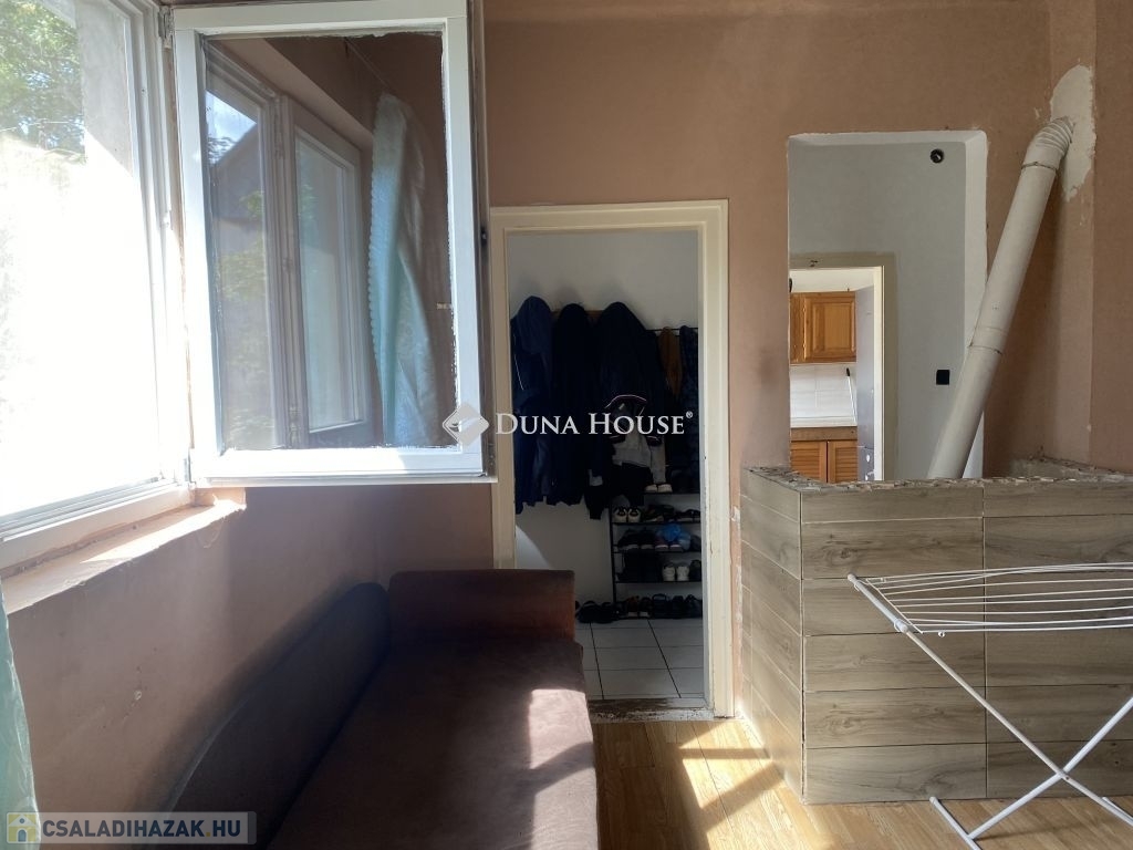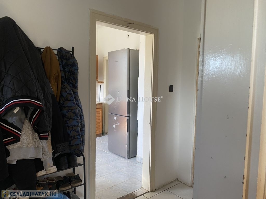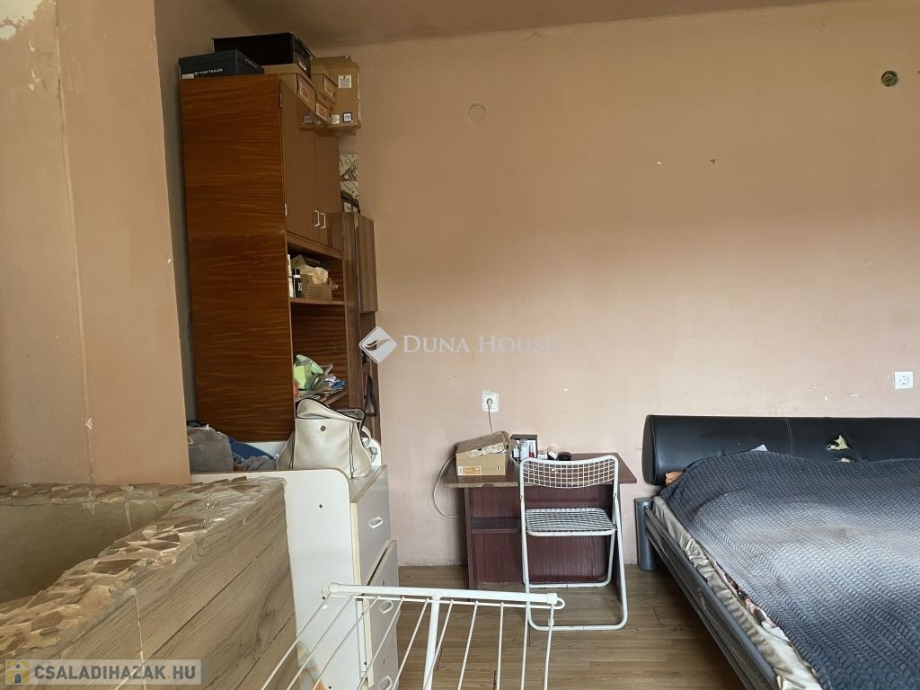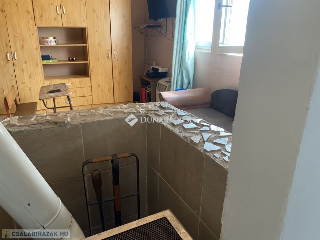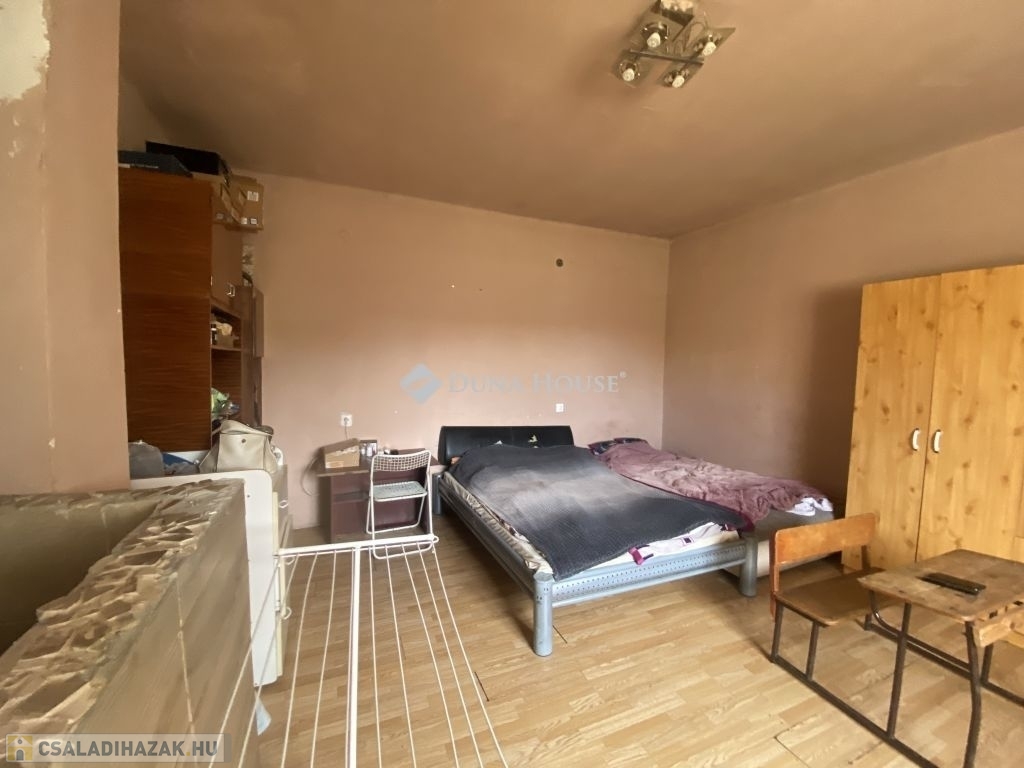 2. Ház.Kívül- belül teljesen felújítandó, jelenleg lakhatásra nem alkalmas, két bejáratos ingatlan az 1950 években épült. Ide csak villany van bevezetve. Jobb oldali falához épült a másik ház. 5 db helyiséggel rendelkezik egyik fala utca fronti, betonozva aljzattal rendelkeznek. Tetőnél lett újra vezetékelve. Csatorna csonk kerten belül, gáz utcában.