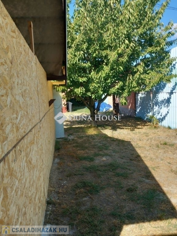 Dömsöd központi elhelyezkedésű, mégis forgalommentes utcájában, rendezett környezetben, jó szomszédsággal kínálunk eladásra egy 94 m²-es, összkomfortos, tetőtér-beépítéses családi házat.