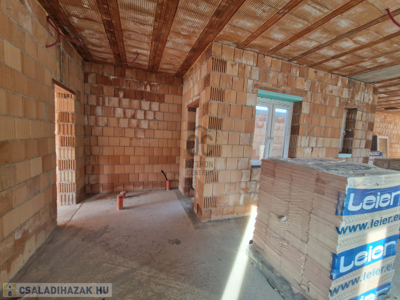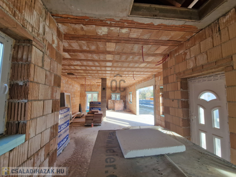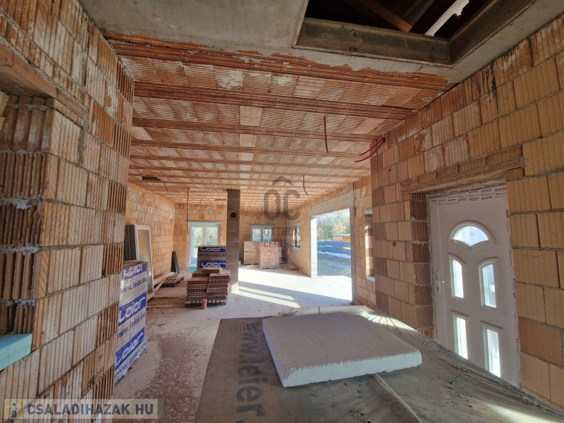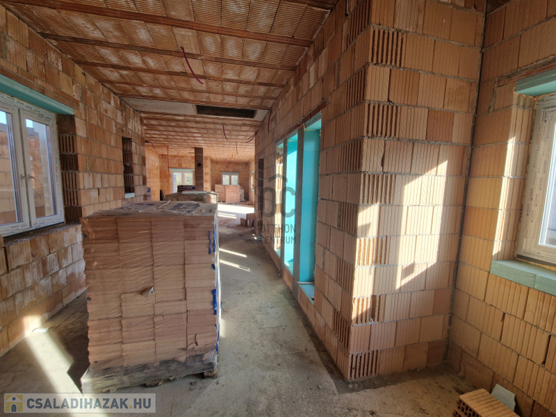 A felmenő falazat, a tetőszerkezet teljes egészében elkészült. A nyílászárók részben beépítésre kerültek.