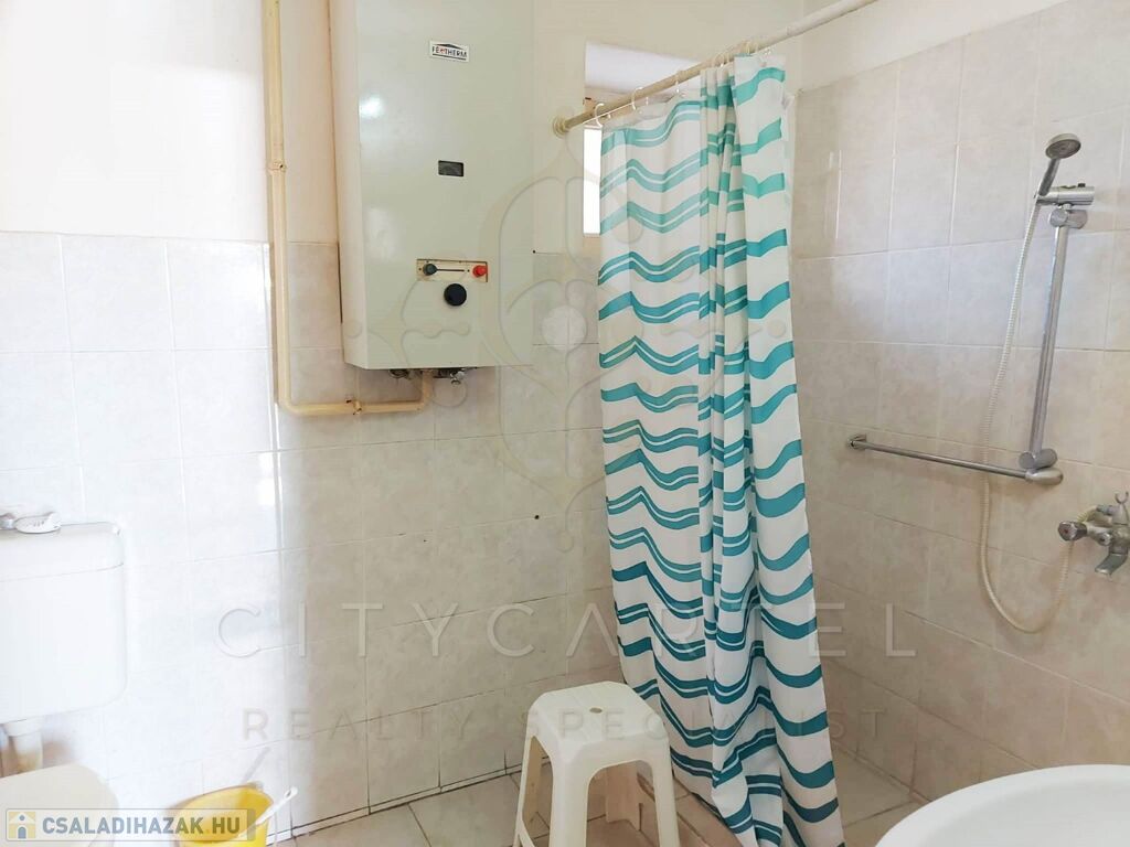 Rendkívül kedvező kínálati áron, a piaci értékénél lényegesen olcsóbban kínálunk eladásra családi házat Dunaföldváron. A csendes Duna-parti kisváros frekventált pontján, jól megközelíthető helyen álló ingatlan az 1950-es években épült, kiváló statikai állapotban lévő, száraz falai 82 nm-es lakóteret zárnak közre. Az épület középpontjában álló előszobához két tágas hálószoba, világos konyha, kamra, fürdőszoba és WC kapcsolódik. A családi ház fűtéséről gázkonvektorok, a meleg víz előállításáról gázbojler gondoskodik. A főépület mellett álló, 50 nm-es melléképület garázsnak, kamrának, téglázott pincének és tároló helyiségeknek ad helyet. A 2.121 nm-es telken gondozott előkert, udvar, valamint tekintélyes méretű hátsó kert terül el.