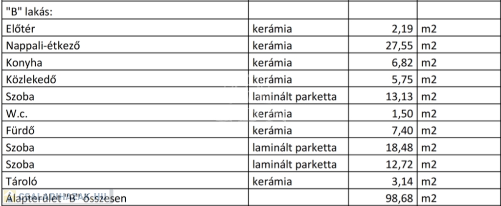 B-lakás 98,68 nm 306 m2-es telekrésszel,