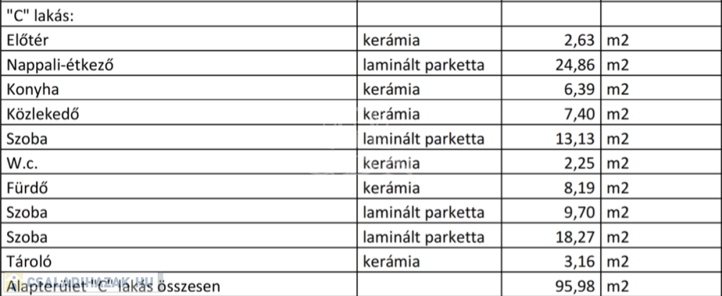 C-lakás 95,98 nm 373 m2-es telekrésszel.