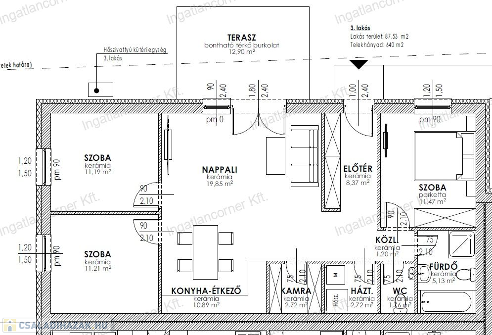A jobb hátsó ingatlan 88 nm-es 640 nm-es telekhányaddal, melynek ára: 99.990.000.- Ft.