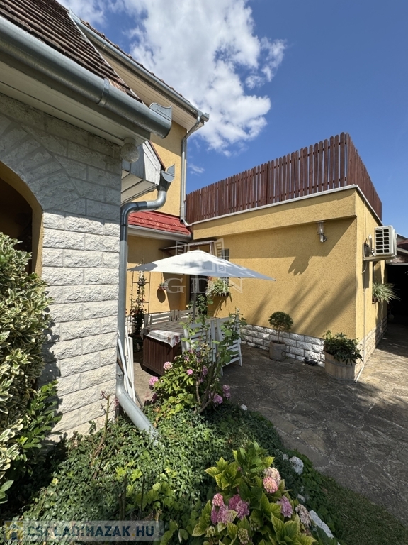 A gyönyörűen gondozott, parkosított 587 nm-es kertben, ami kiváló helyszín a kikapcsolódásra és családi összejövetelekre, 2 db teljesen külön bejáratú ház található.