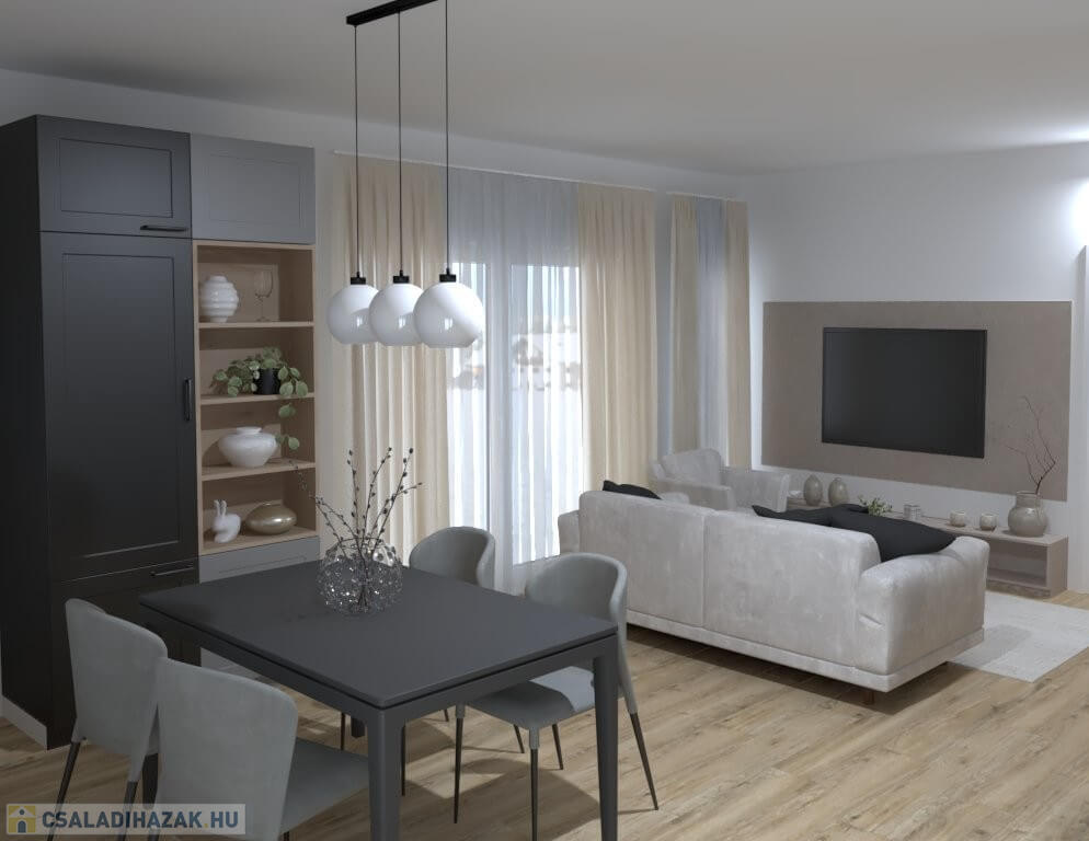 • Tágas amerikai konyhás nappali, 3 hálószoba, 2 fürdőszoba + háztartási helyiség