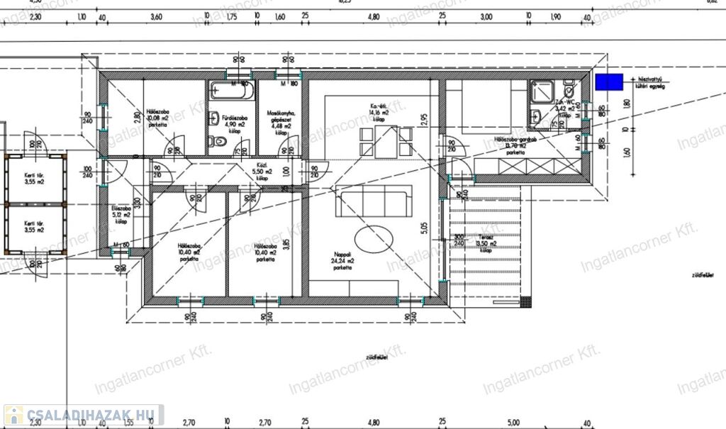 Igény szerint, választhatók a burkolatok, a belső ajtók, szaniterek és a válaszfalak is még variálhatók.