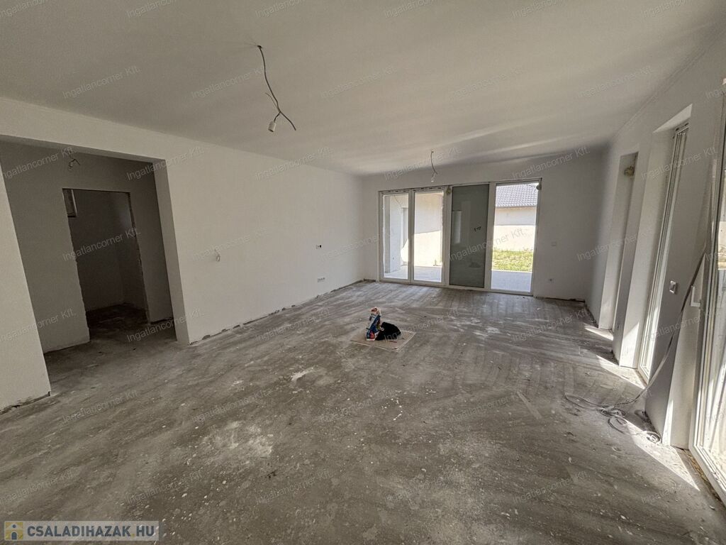Az első ingatlan (utcafrontról nézve), 540 m2 telekrésszel rendelkezik, 122 m2 alapterületű, nappali + 4 hálószobás. Az ingatlanhoz tartozik, + 33 m2 terasz, + 18 m2 külső, zárt tároló.