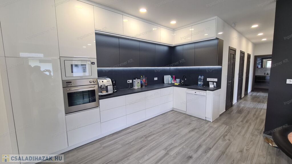 A kapuk elektromos motorral felszerelve. Kert terep rendezve, füvesítés, növényzet nélkül kerül átadásra.