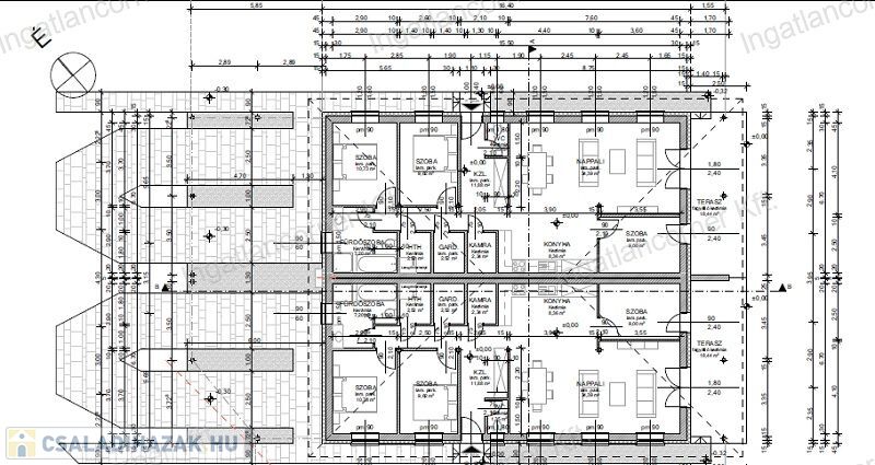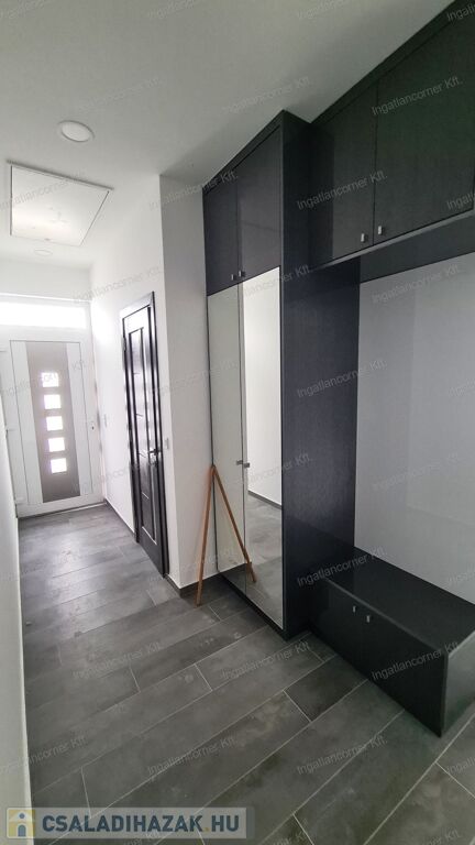 Alapterület 168m2 melyből 105 m2 a hasznos alapterület a terasz 21m2-es amiből 16m2 fedett rész. A kocsibeálló fedett 42m2.