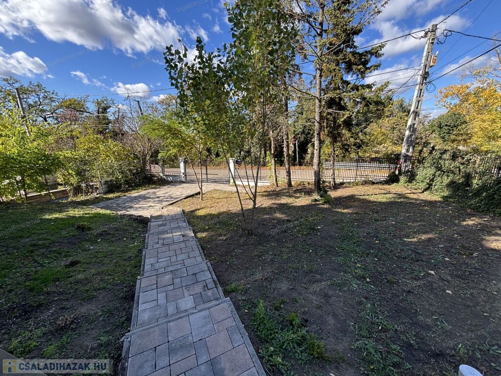 Autóval elektromos kapukon keresztül lehet beállni, telken belül 2db autónak van beállási lehetőség, abból az egyik fedett!