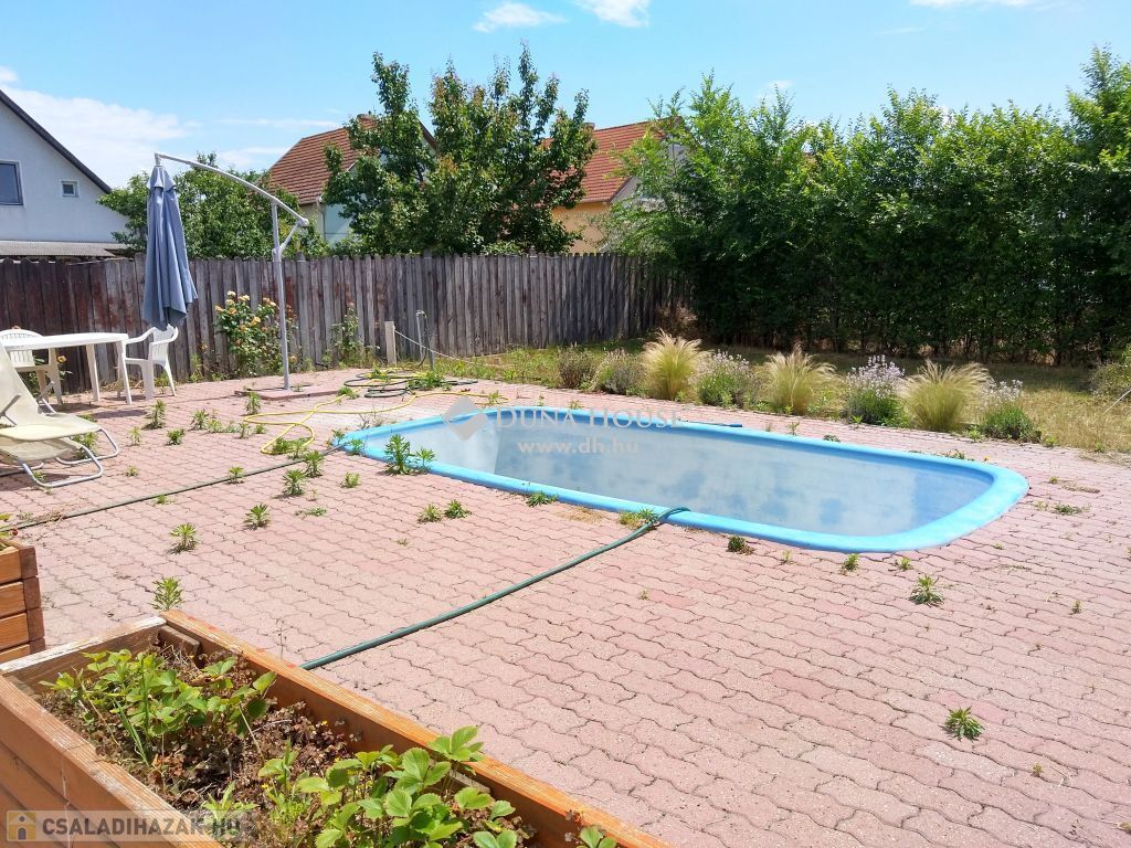 A ház külleme rendezett, külső homlokzata esztétikus, teteje remek állapotú cseréptető. Az épület mögött belátásmentes, intim kert került kialakításra, melynek közlekedő részei térkövezve vannak. A kert közepén egy medence is található, mely kisebb takarítás után azonnal használatba vehető.