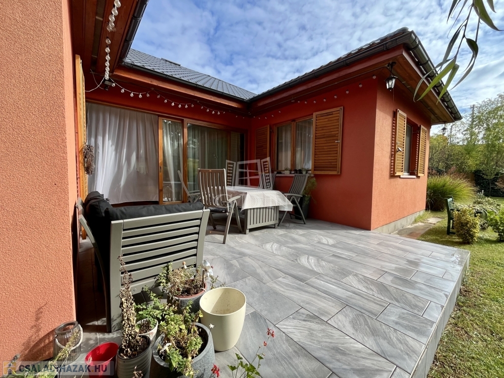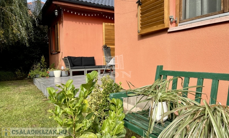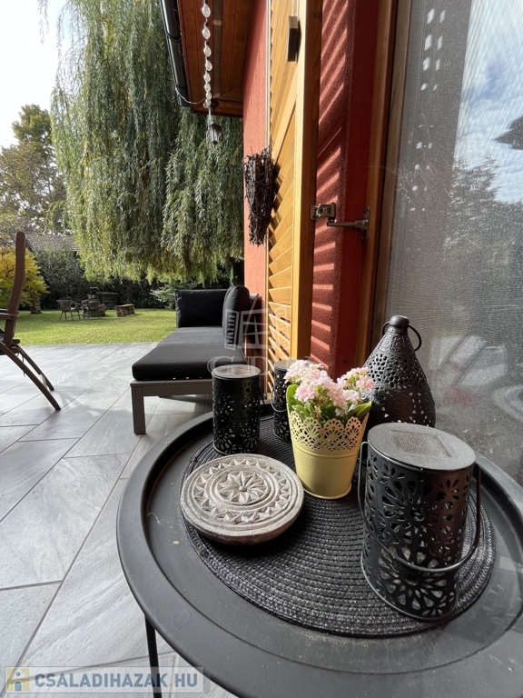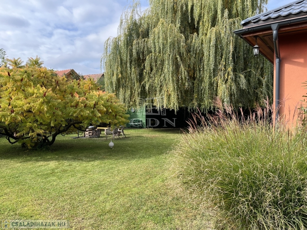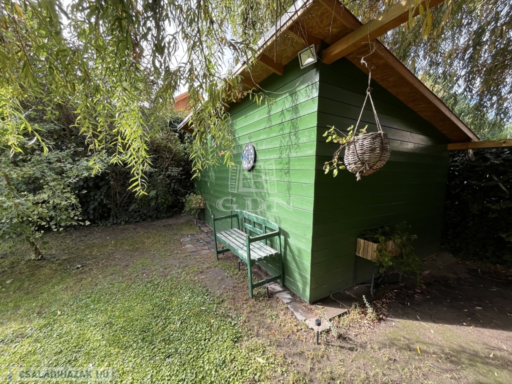 gondosan karbantartott, termő gyümölcsfákkal, dísznövényekkel és hangulatos kerti grillezővel – igazi nyugalom-sziget, ahol a természet és a harmónia egyszerre van jelen. A 15 nm-es tároló praktikus és esztétikusan illeszkedik a környezethez.
