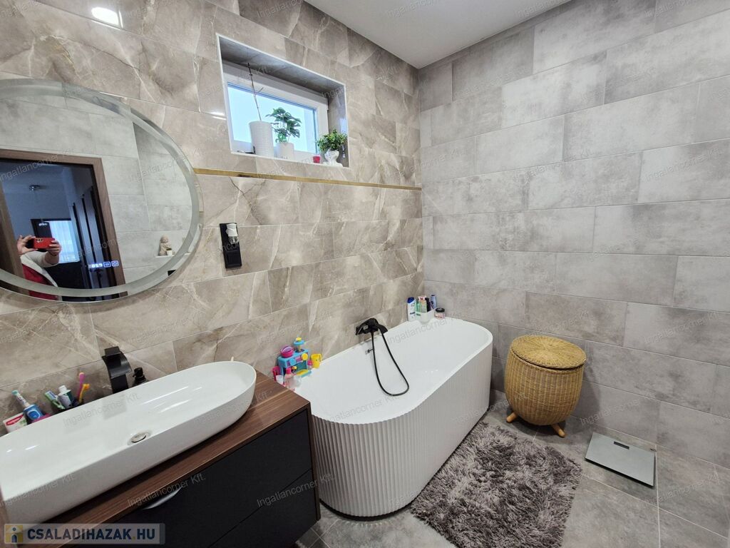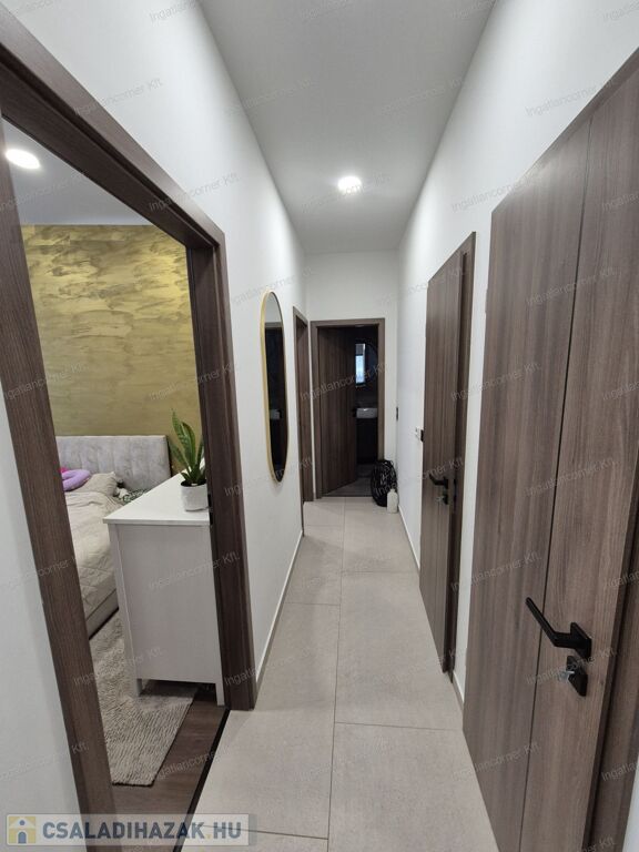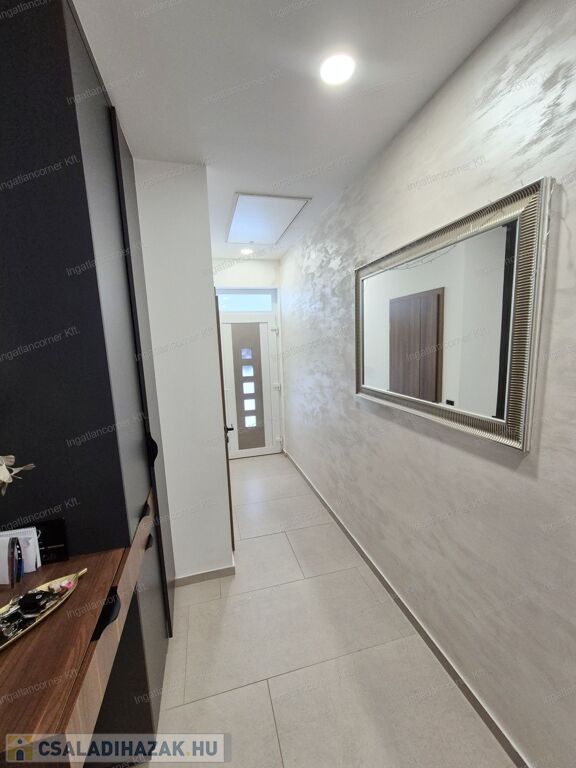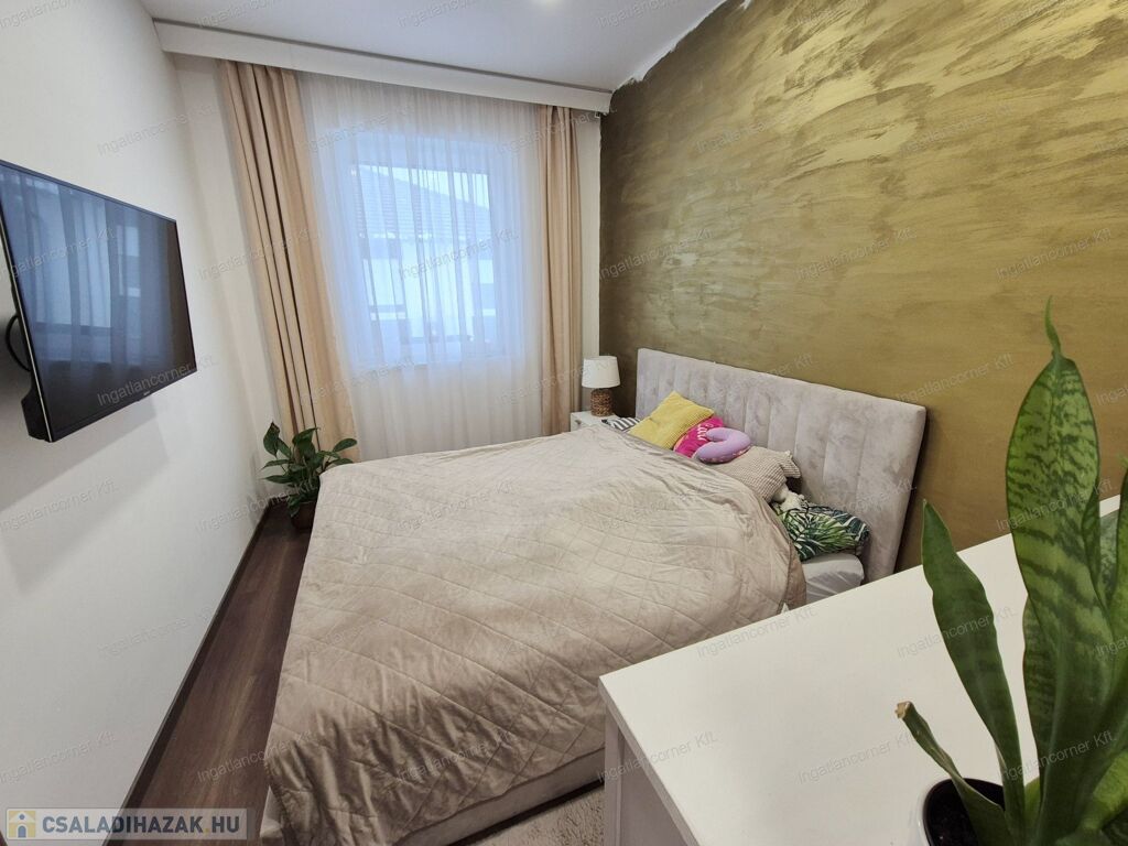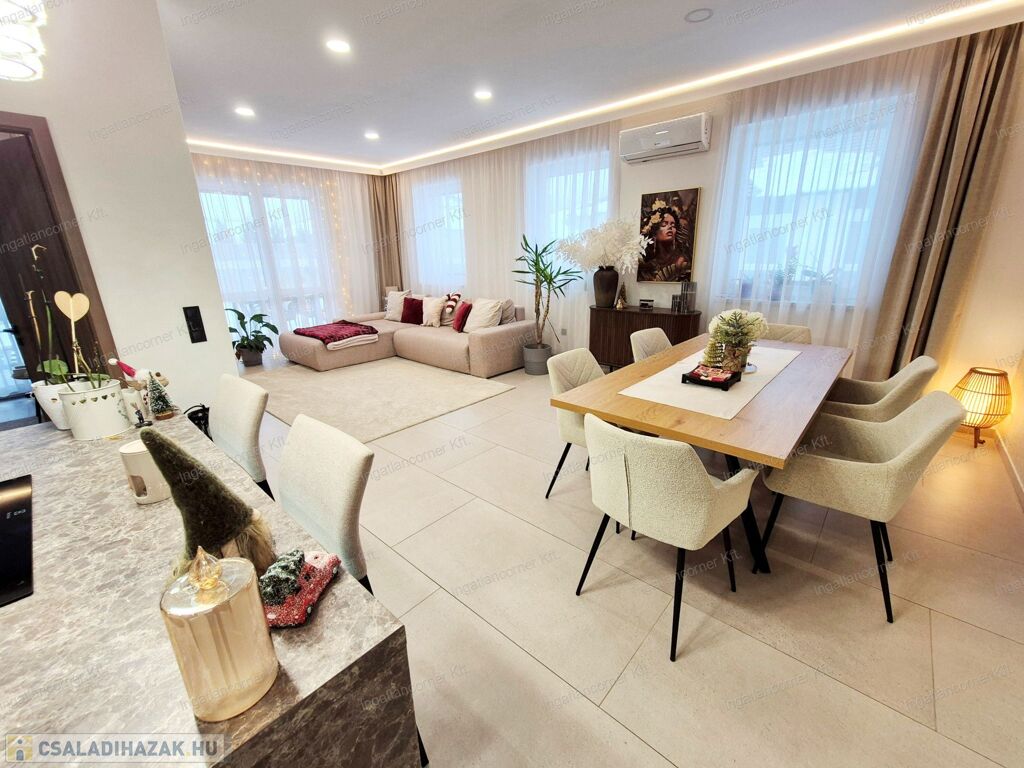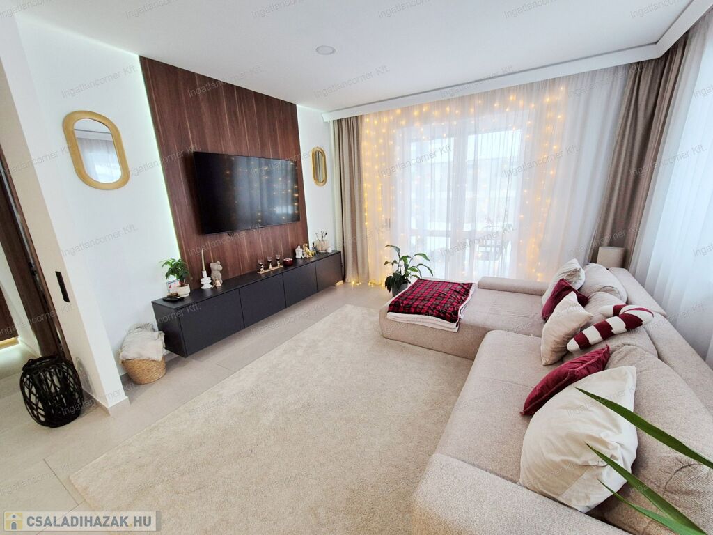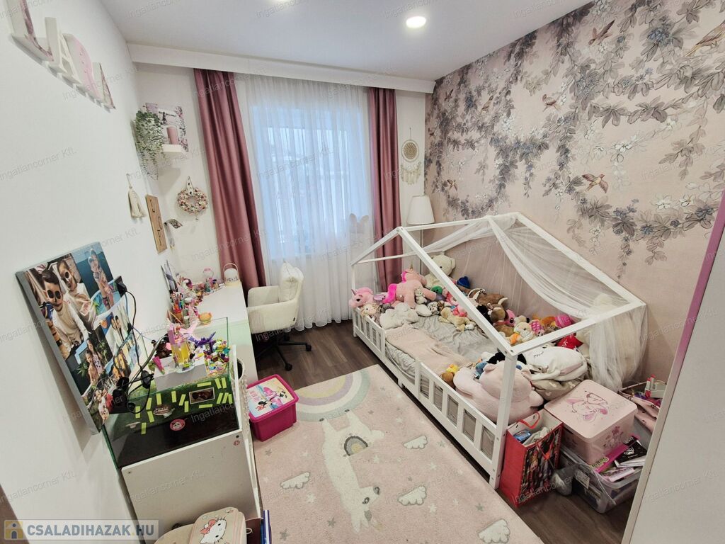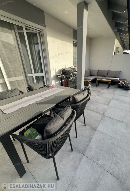 Az ingatlan 425m2 telekkel rendelkezik, melynek kertje a műfűnek köszönhetően GONDOZÁSMENTES, a lakótér 105 m² hasznos alapterülettel rendelkező ingatlan, melynek ELOSZTÁSA és TÁJOLÁSA KIVÁLÓ. A lakótéren túl egy 18,44 m²-es fedett terasz érhető el a nappaliból. A ház igényesen berendezett, modern megoldásokkal és minőségi anyaghasználattal készült.