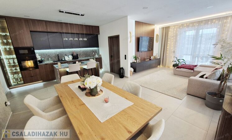 -REJTETT VILÁGÍTÁS: minden helyiségben távirányítóval vezérelhető mennyezeti led világítás, pluszban a konyhában a pult és konyhabútor alatt és a média fal két oldalán.