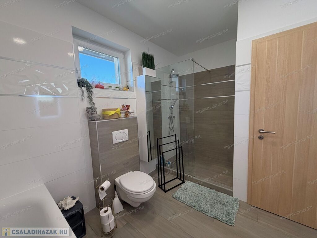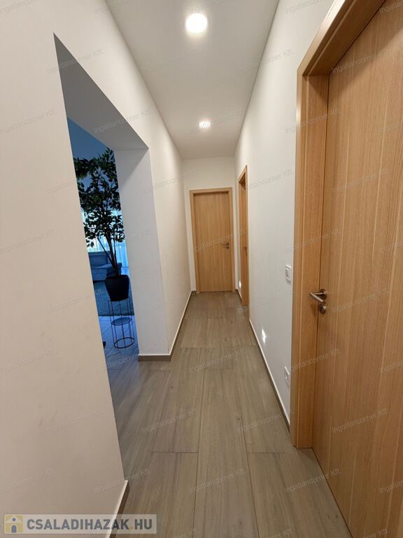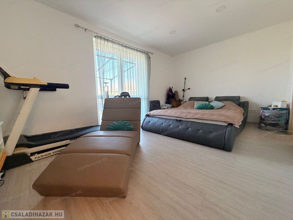 Alapterület 168m2 melyből 105 m2 a hasznos alapterület a terasz 21m2-es amiből 16m2 fedett rész. A dupla elektromos kapuval ellátott garázs 42m2.