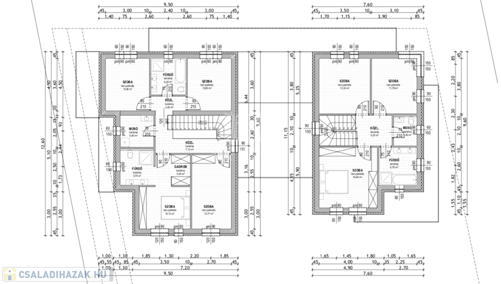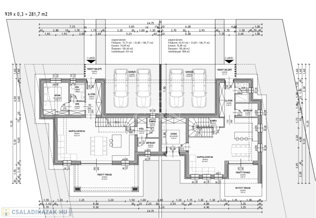 A 2 sz. lakás alaptrülete:156m2 alapterületű két szinten 4db. hálószobával, 3 fürdőszobával, dupla állásos garázzsal épül.