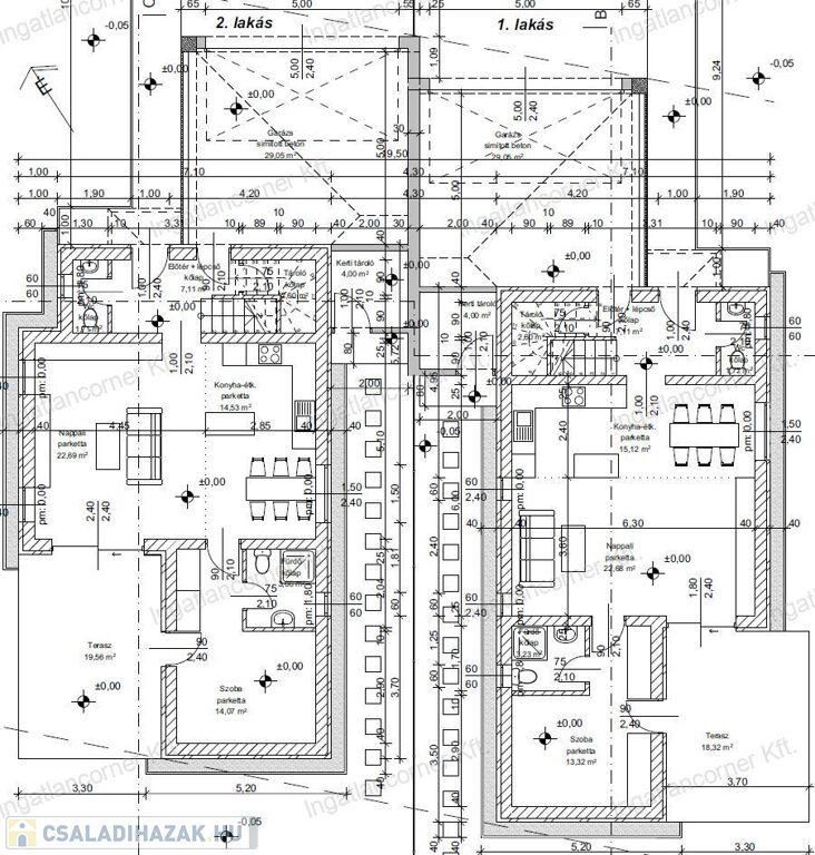 A lakásokhoz tartozó telek méret több mint 415nm2