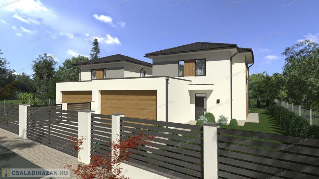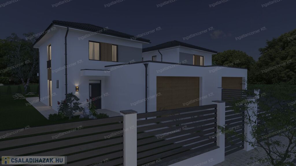 Amerikai konyhás nappali étkező mellett találunk még 4 hálószobát, 2 fürdőszobát, 1 mosókonyhát, 2 gardrobót, 1tárolót, és egy dupla garázst is.