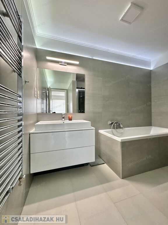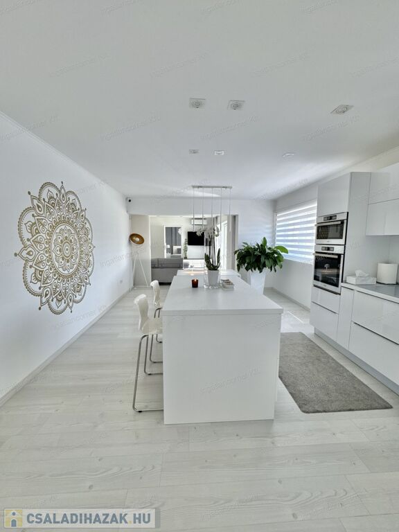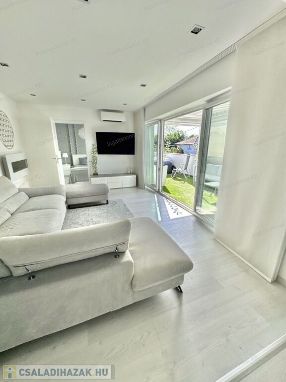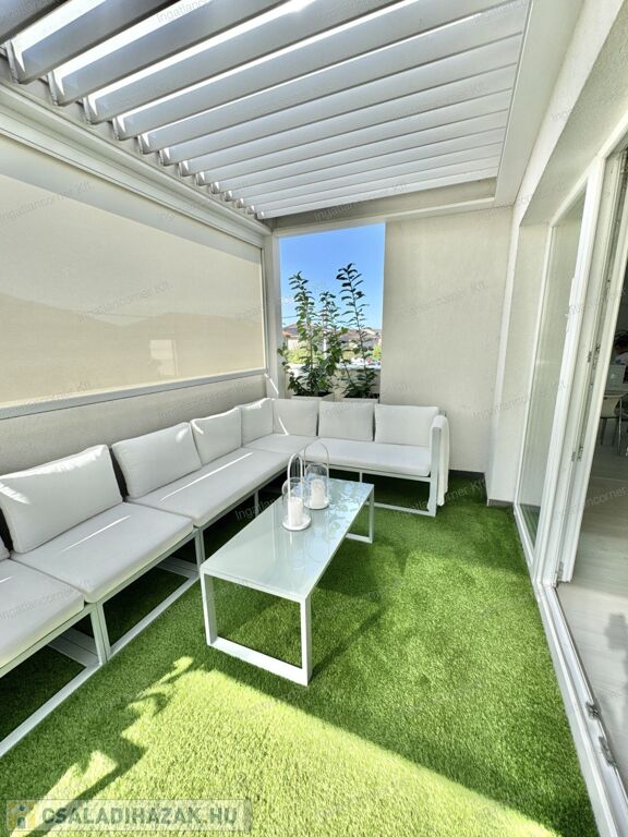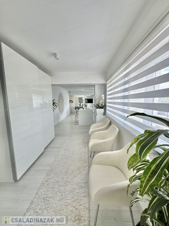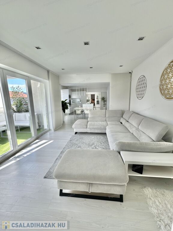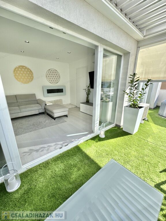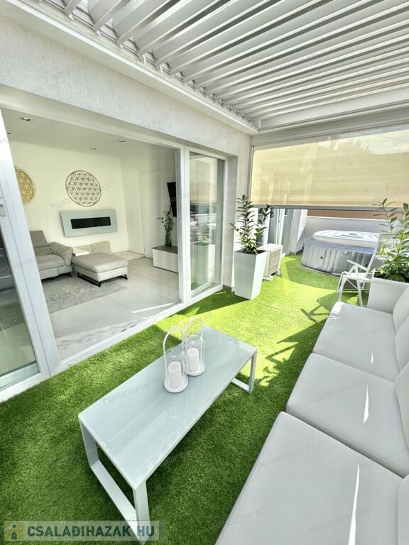 Hogy miért? Különleges kialakítása miatt valójában az ország legegyedibb ingatlanja. Egy álomszép, hibrid lakás: penthouse lakás és kertes sorház keveréke. Továbbá emelt műszaki felszereltségű, 4 HÁLÓSZOBÁVAL, 22 nm-es, részben fedett (elektromos fedés) terasszal, ahol a jacuzzi is elfér. Mivel 2019-ben épített, teljesen újszerű, kocsibeállóval, ZEN kerttel, /amiben kis kerti tó is kapott helyet a süllyesztett intim kerti szett mellett/ illetve a TELJES BERENDEZÉSSEL EGYÜTT ELADÓ.