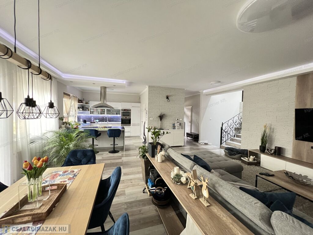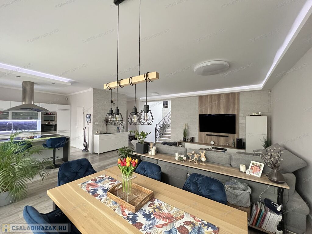 Szinteltolással, kényelmes lakóterekkel kialakított családi ház, magas minőségű anyag felhasználással.