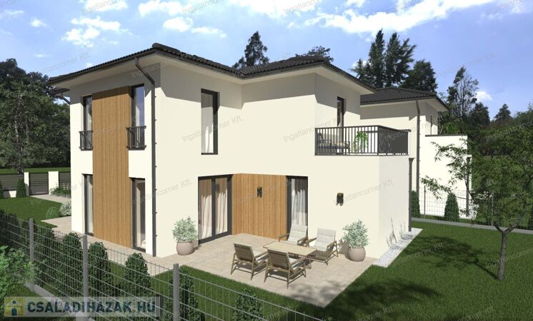 Amerikai konyhás nappali étkező mellett találunk még 4 hálószobát, 2 fürdőszobát, 1 mosókonyhát, 2 gardrobót, 1tárolót, és egy dupla garázst is.