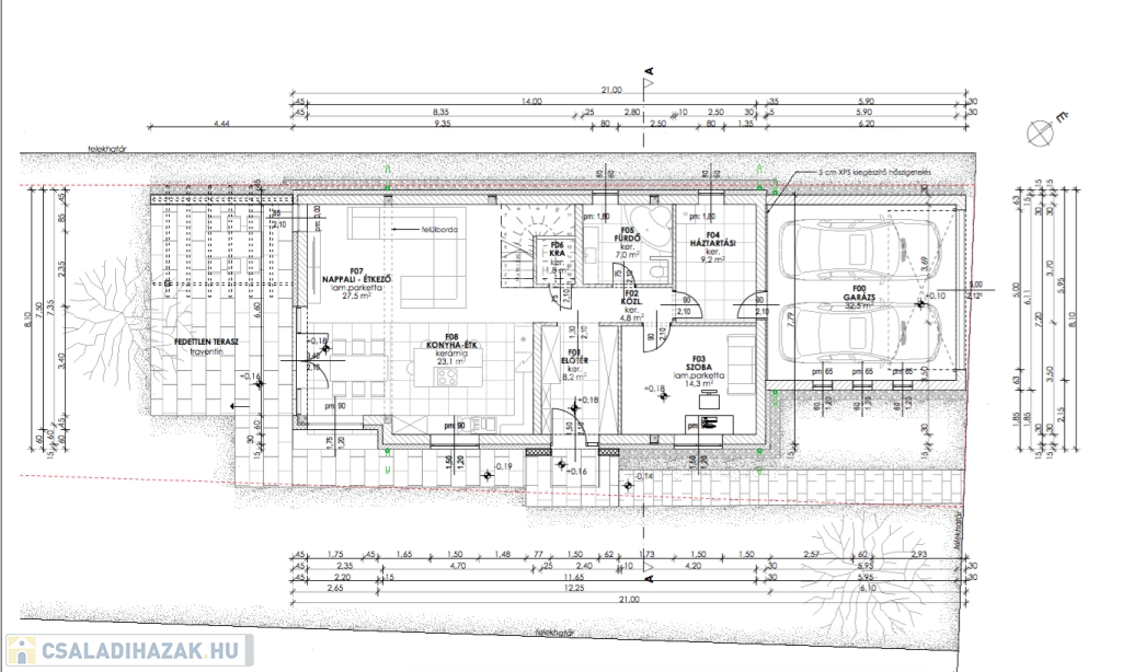 A most épülő ingatlan annyiban módosul, hogy a nappali konyha ebédlő élettér 70 m2-re bővül.