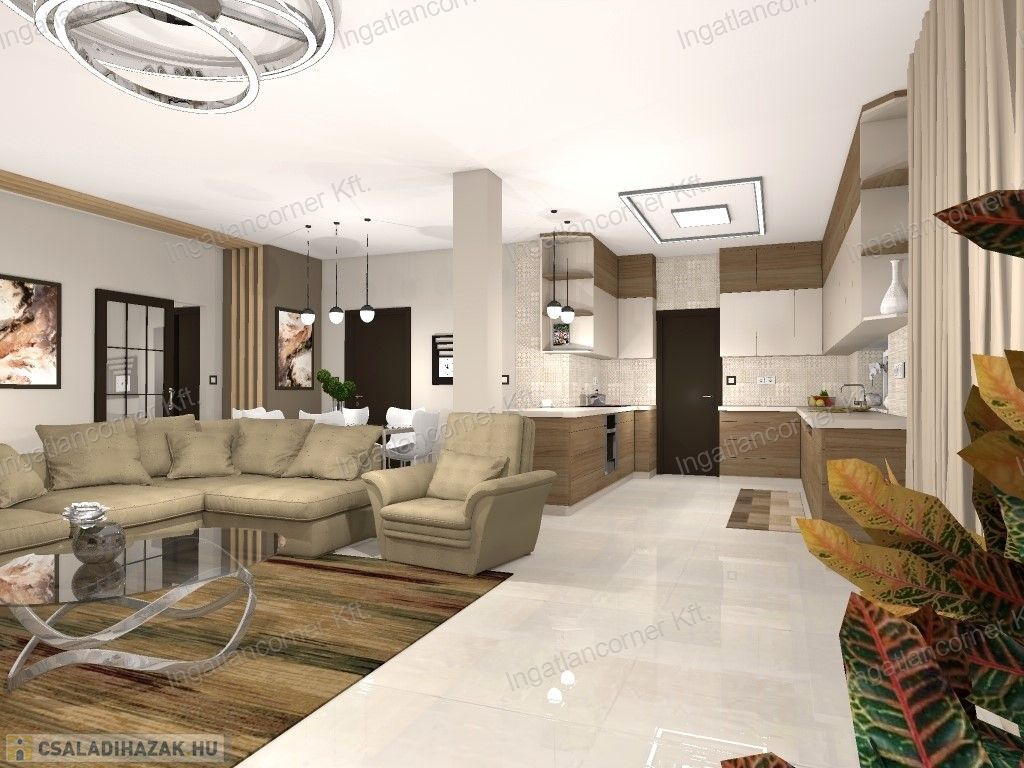 - amerikai konyhás nappali terasz kapcsolattal 4 szoba kamra fürdőszoba , WC, előtér, 2 ÁLLÁSOS GARÁZS