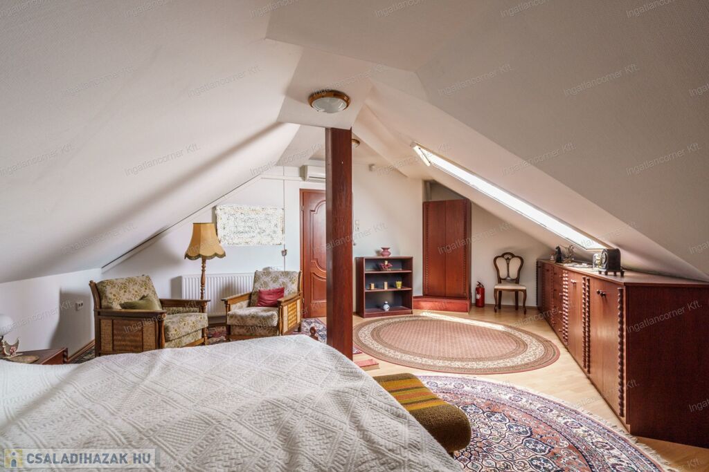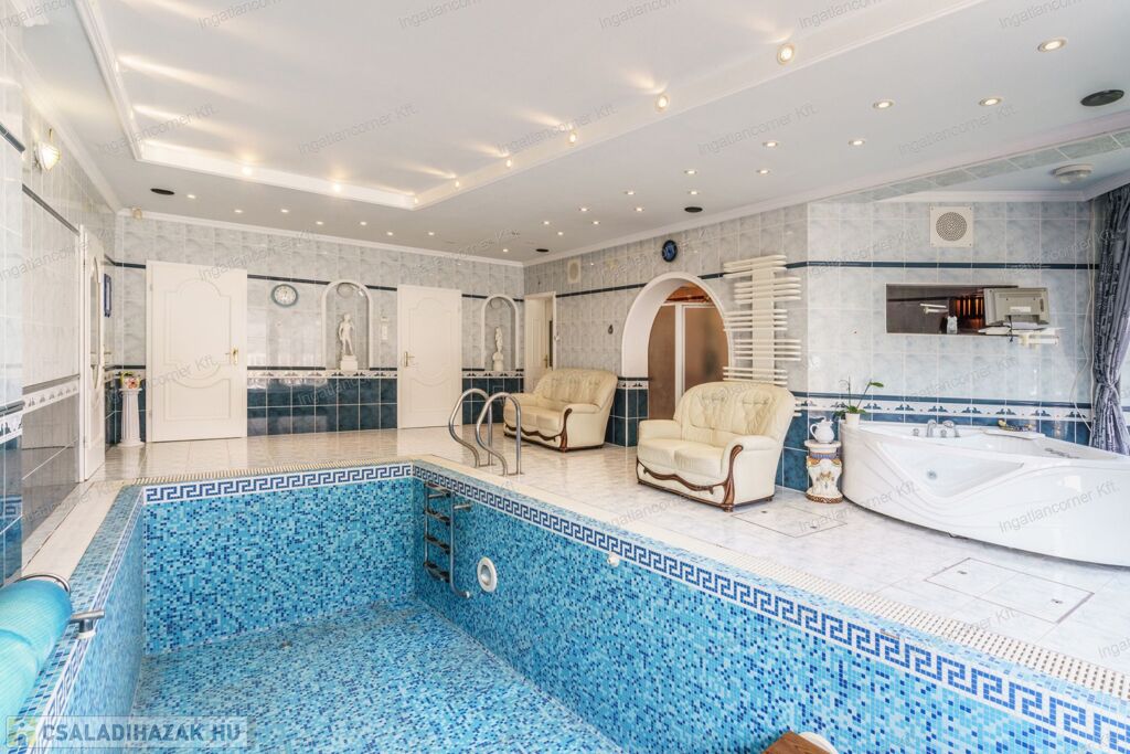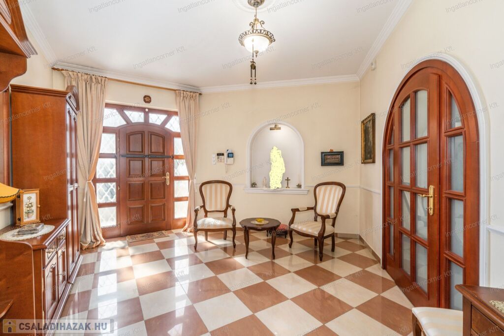 Az ingatlan biztonsága kiemelkedően fontos: a riasztó rendszer, az elektromos kapu és garázsajtó biztosítják a család nyugalmát és a vagyontárgyak védelmét.