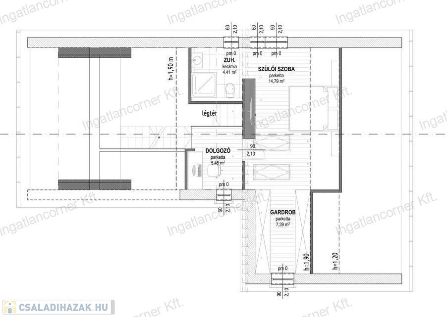 valamint egy privát szülői lakrész saját gardróbbal és fürdővel