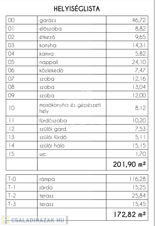 Nettó 149 nm alapterület, 47 nm garázs, 41 nm terasz.