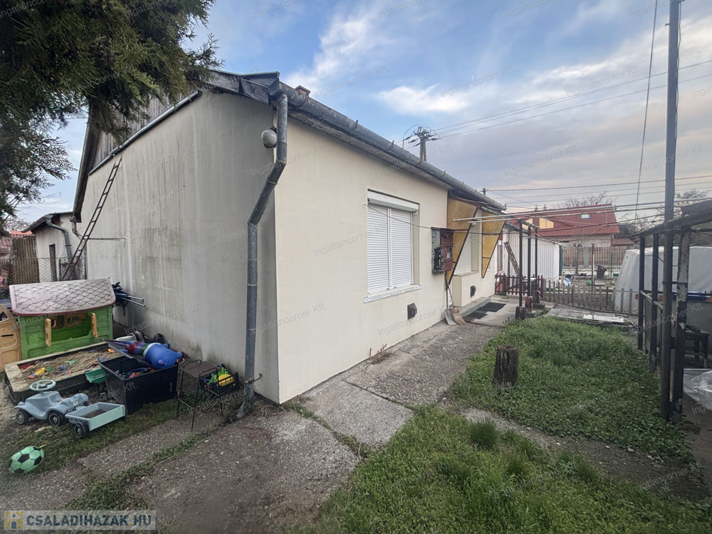 Eladó (vagy beszámítással nagyobb alapterületű ingatlanra cserélhető) Dunaharaszti Petőfi liget részén, egy 305 m2 telekrésszel rendelkező, 65 m2 alapterületű, nappali + 1 hálószobás, felújítandó állapotú, vegyes falazatú ikerházrész és a hozzá tartózó 20 m2 alapterületű szerelőaknás garázs.