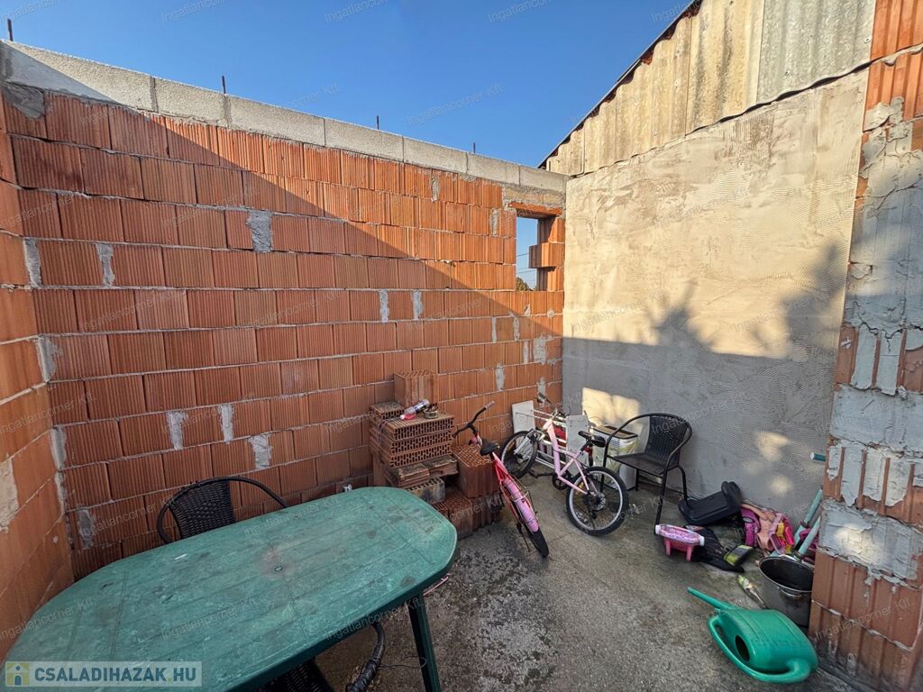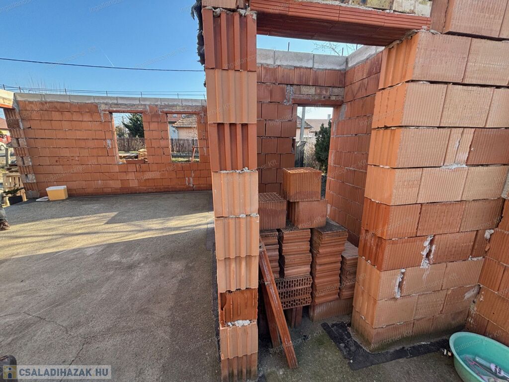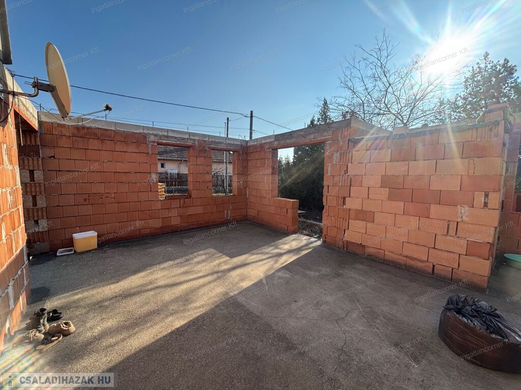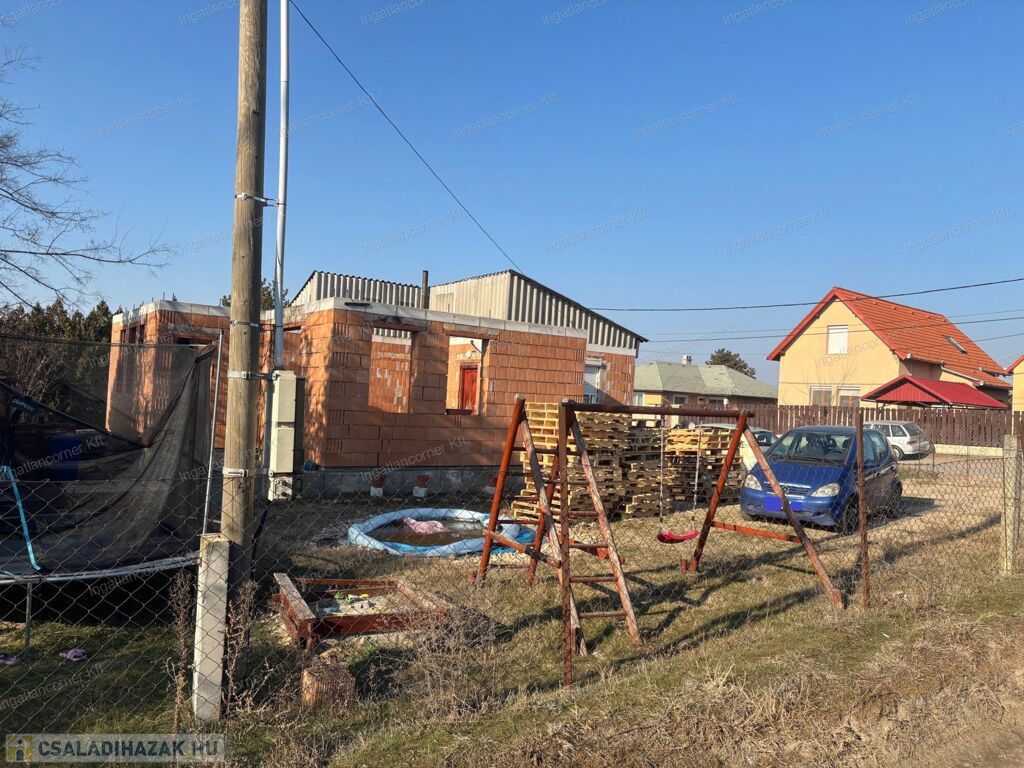 Eladó Dunaharaszti Alsóváros részen egy 450 m2 telekkel rendelkező, nettó 86 m2 alapterületű + terasz (8 m2), befejezésre váró családi ház. Villany, víz, csatorna van, gáz nincs bevezetve.
