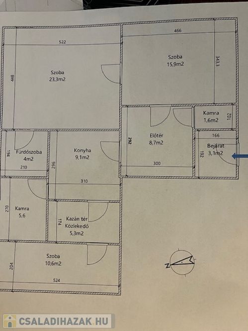 Elosztása: előszoba,wc,nappali,3 külön bejáratú szoba,fürdőszoba,kamra,kazánház.