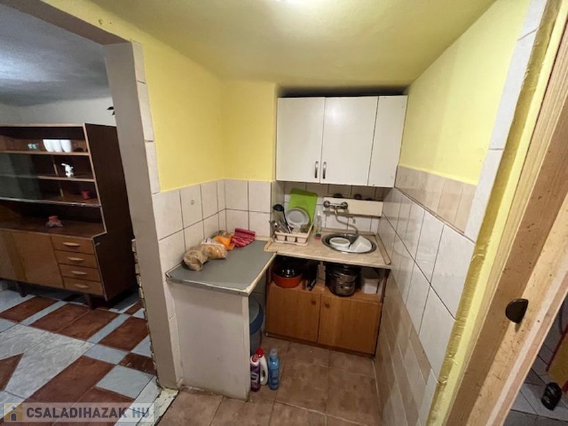 A telken külön álló 35 nm 1 szoba,konyha,fürdőszobás ház gázfűtéssel.