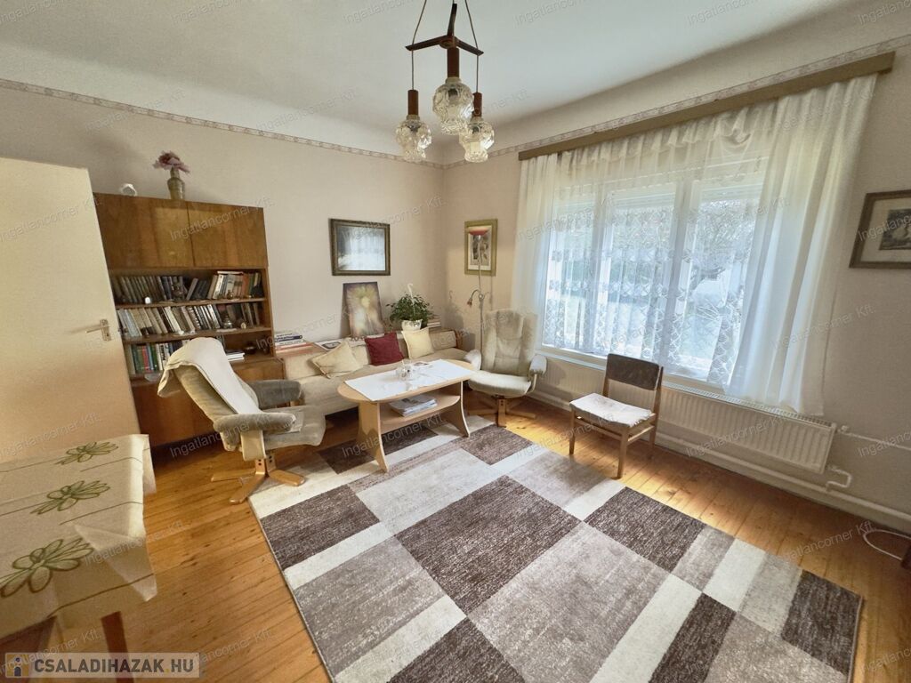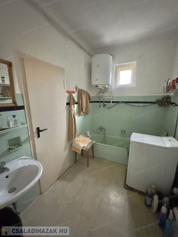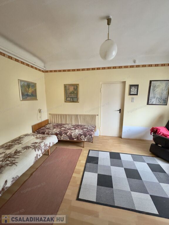Jelenleg felújításra szorul. A 70 nm-es családi ház nappali + 2 hálószobás, alápincézett és betonfödémmel épült, beépíthető. A telken még egy 40 nm-es garázs+ üzlethelyiség is található + tárolók.
