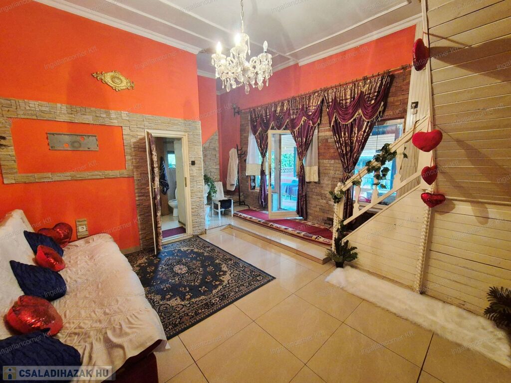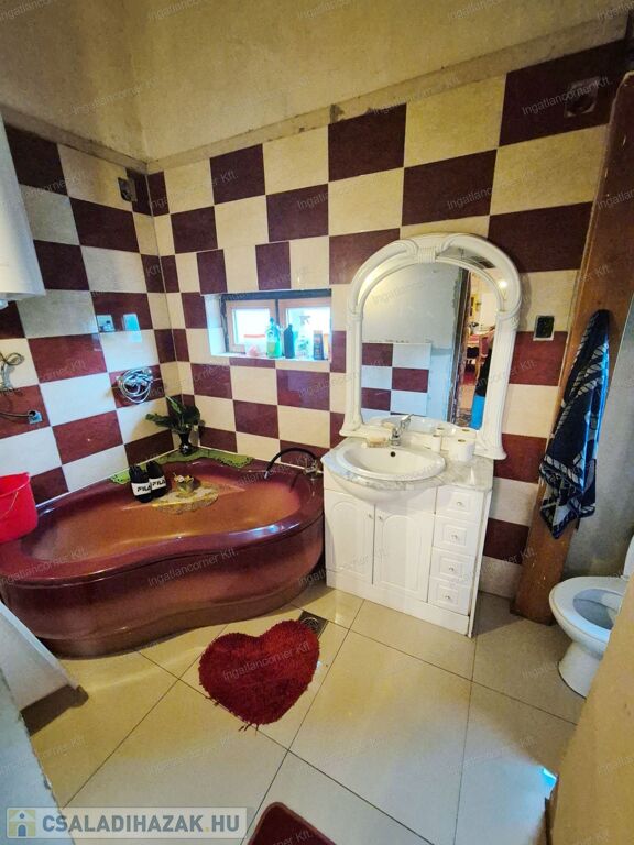 Ingatlan állapota: az előszobában elektromos vezetékei, földszinten az utcafronti ablakok cserére kerültek, illetve az alsó szinten a fürdőszoba és a nappali egy része burkolásra került, de nem került teljes befejezésre (a befejezéshez szükséges burkolatok megvannak). Az ingatlan felújításra és befejezésre szorul.