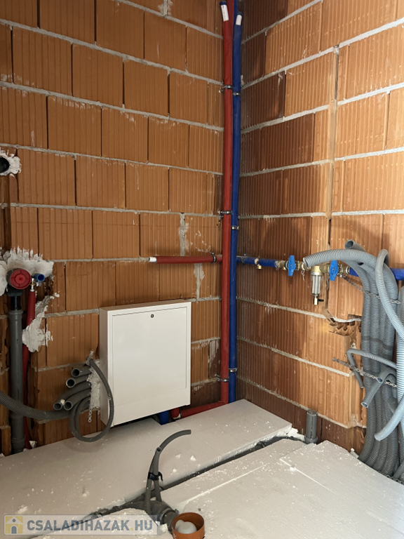 Fűtése 9,5 KW-os hőszivattyúkról ,padlófűtés, használati meleg víz és lakásonként 2db beltéri klíma egységek is erről üzemelnek.