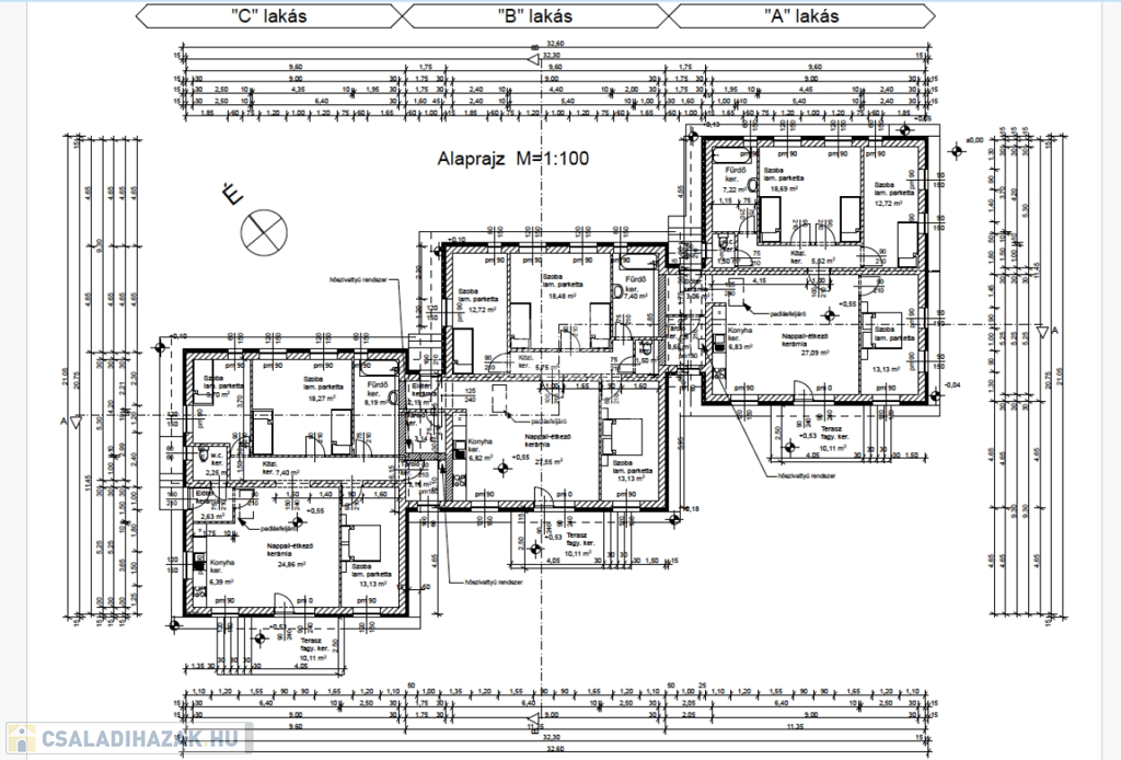 A 3 lakás minimálisan és a hozzá tartozó telkek mérete is eltér: