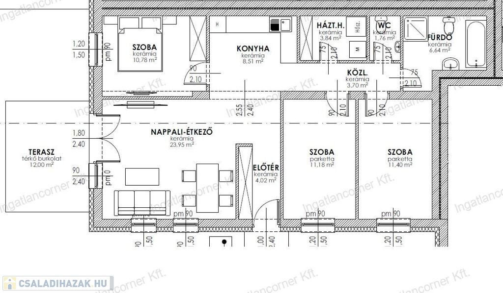 Igény szerint, választhatók a burkolatok, a belső ajtók, szaniterek és a válaszfalak is még variálhatók.